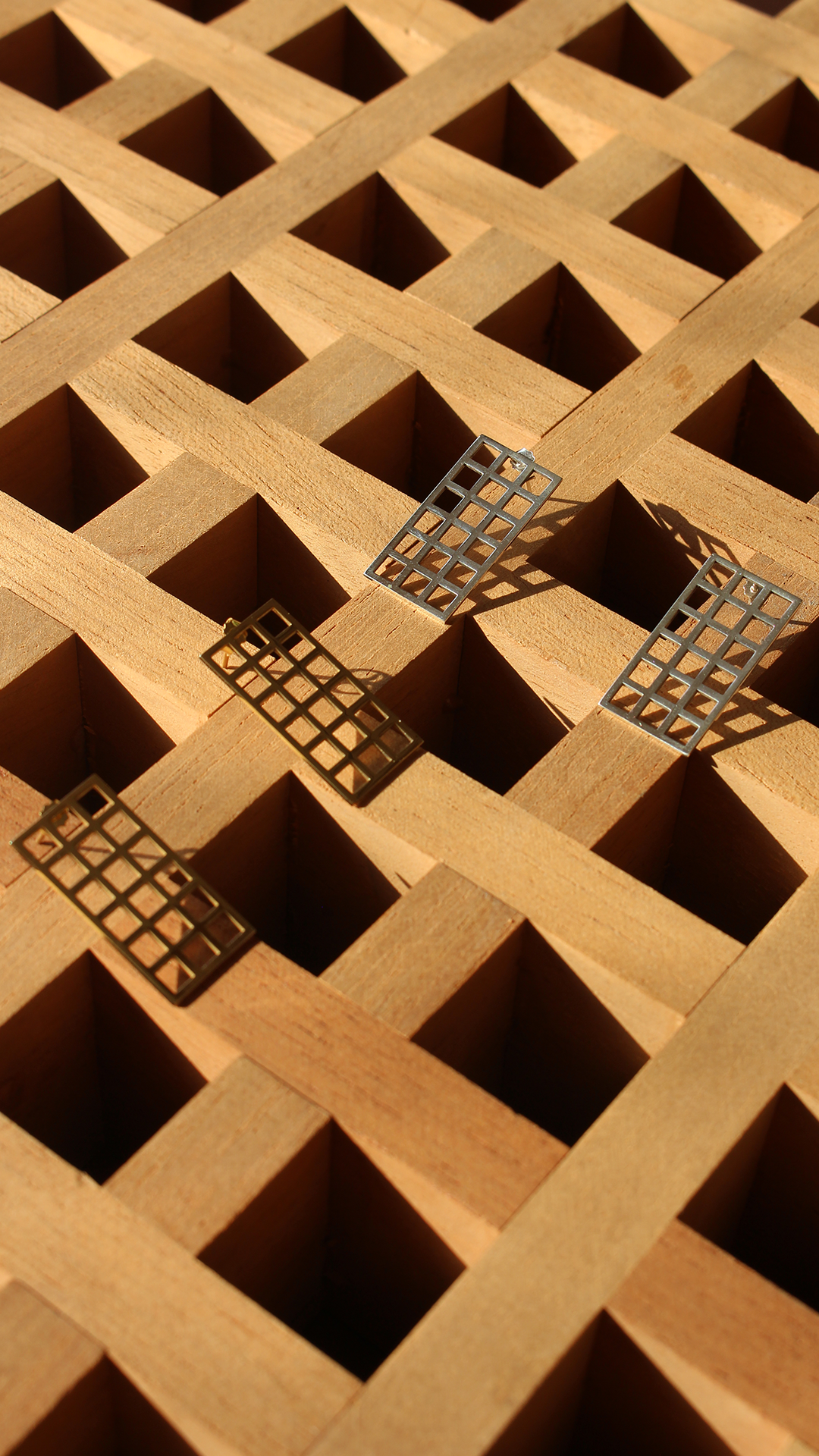 Brinco feito na prata 925 inspirado no elemento arquitetônico Muxarabi.