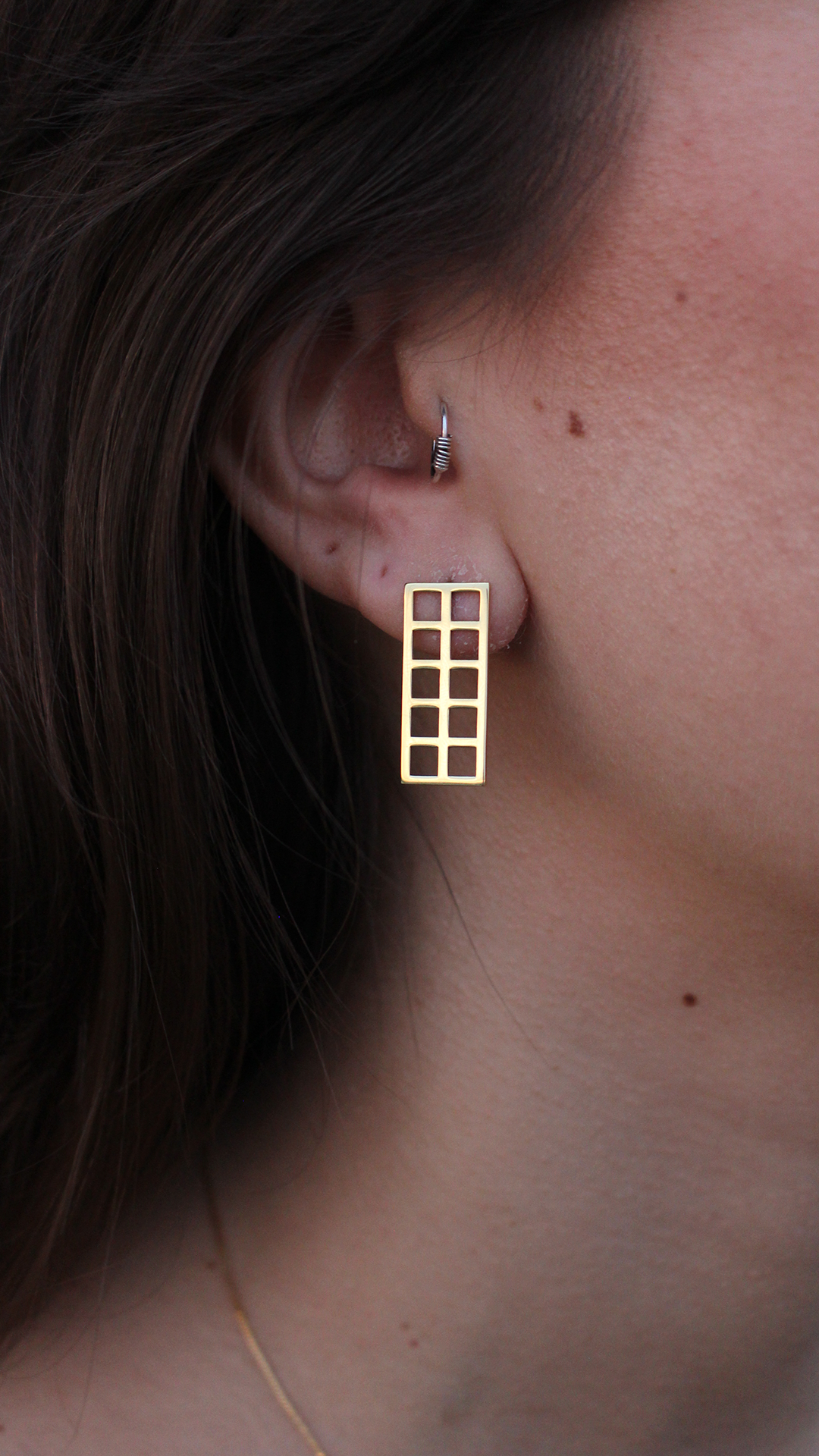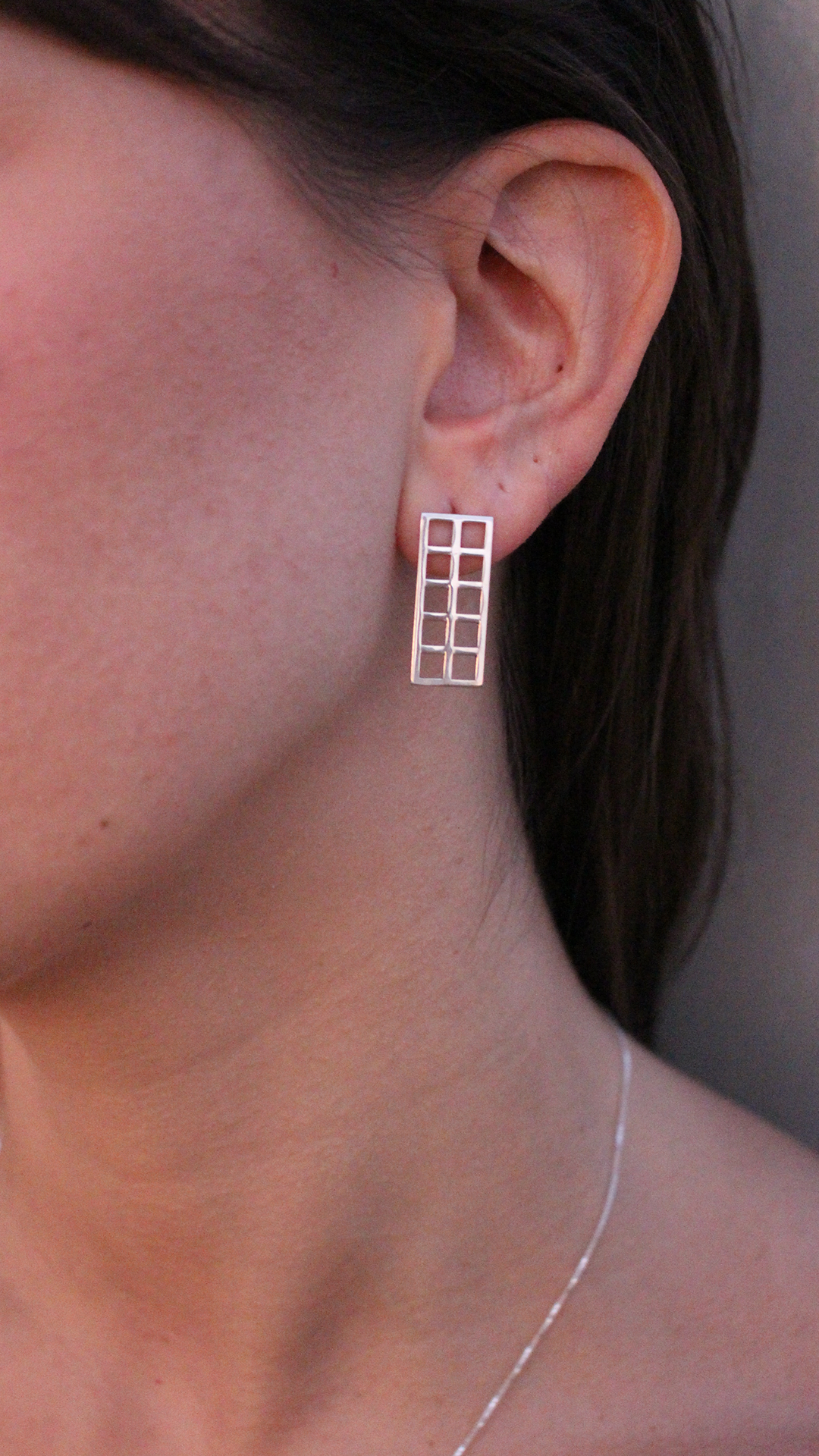 Brinco feito na prata 925 inspirado no elemento arquitetônico Muxarabi.