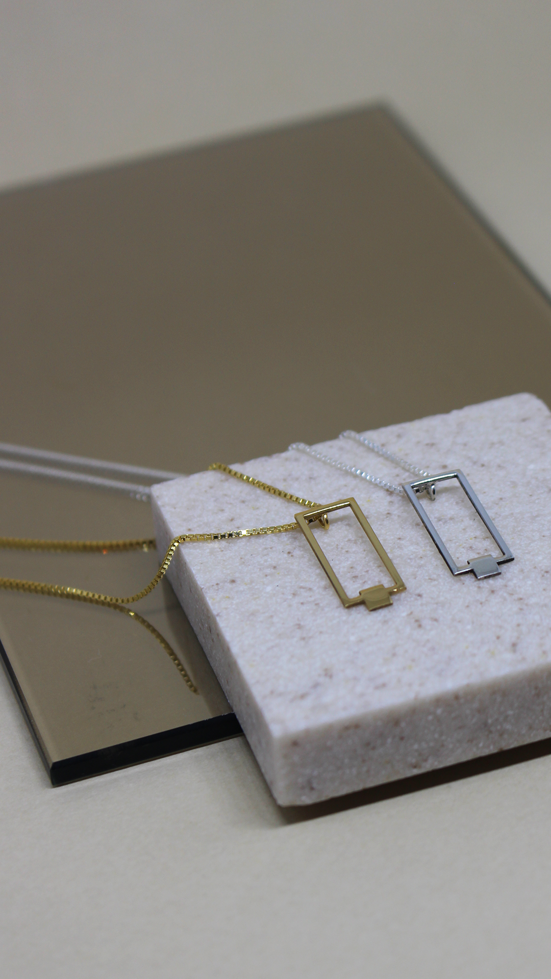 Colar com pingente pequeno feito na prata 925 inspirado no Cavalete de Lina Bo Bardi (1968).